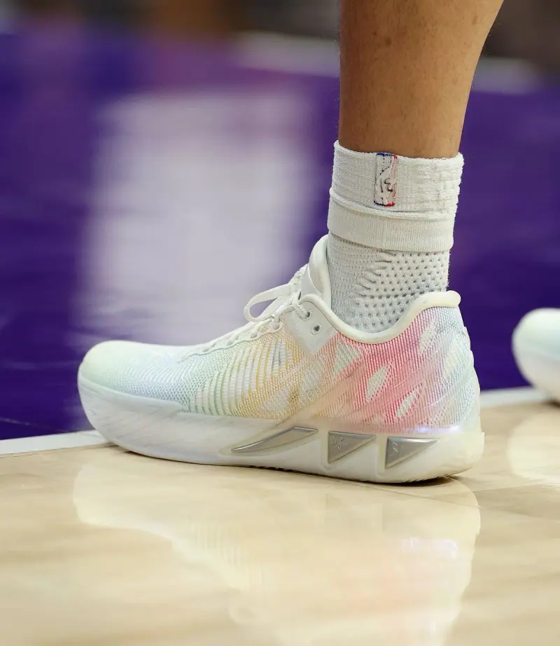 比赛中,汤普森上脚拾壹如初配色安踏 KT11。