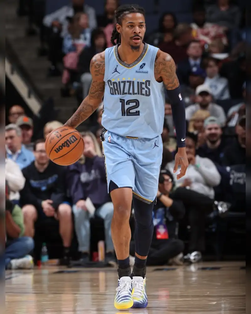 莫兰特穿着莫瑞州立大学配色JA3,得到23分12助攻3盖帽